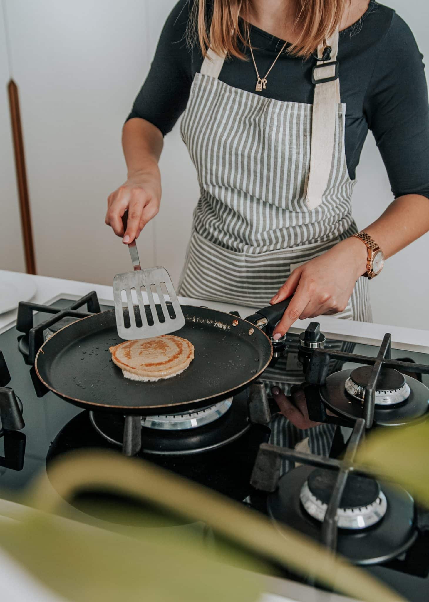 2. Place pan over medium heat, add coconut oil and then a large tablespoon of the mass. When bubbles start to appear on the surface, turn the pancake over and bake for another 3 minutes.
