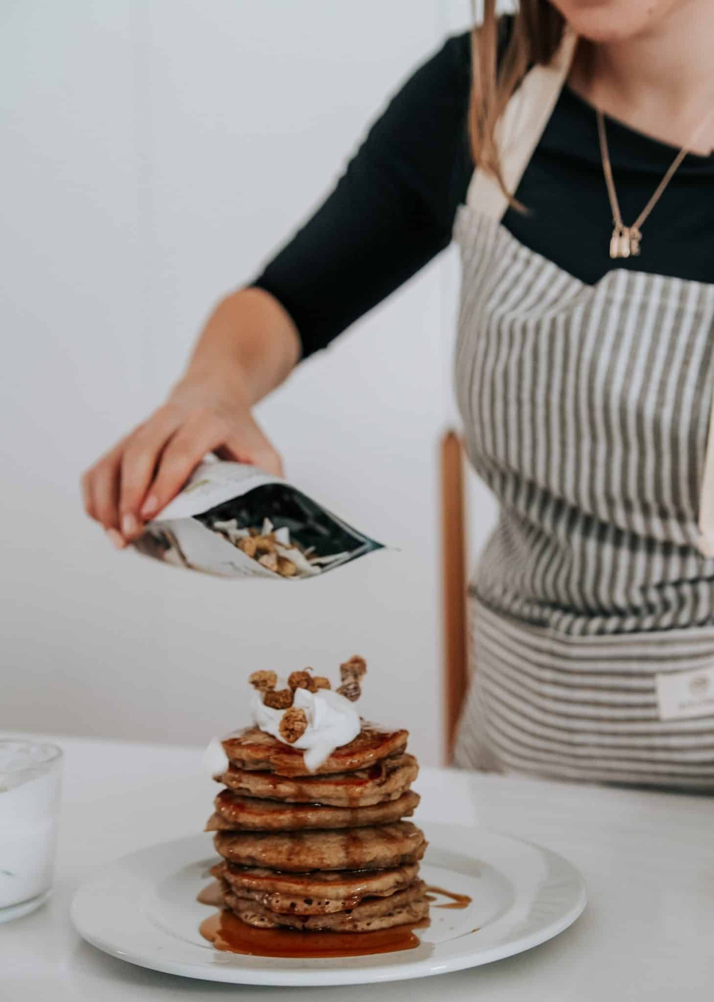 Is there anything better for breakfast than delicious and fluffy pancakes?  Sweet, healthy and fulfilling.  Such pancakes can be prepared at home, without a lot of effort! All you need to do is mix all the ingredients together in a blender, and the preparation will not take more than 20 minutes of your time. For a sweet surprise and crunchiness, top the pancakes with agave syrup and sprinkle them with Paleo Snack.