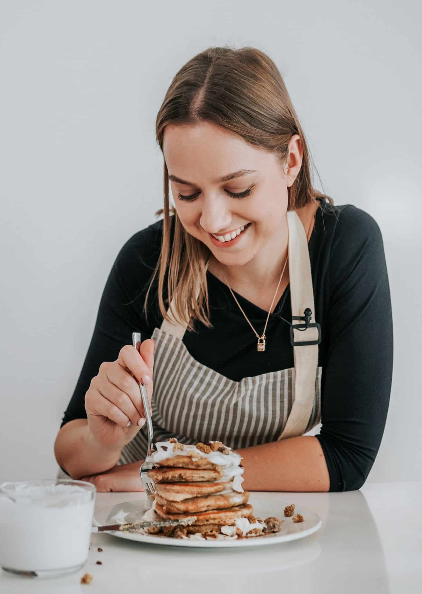 3. When the pancakes are ready, serve them with the desired topping – coconut cream, paleo snack and agave syrup.