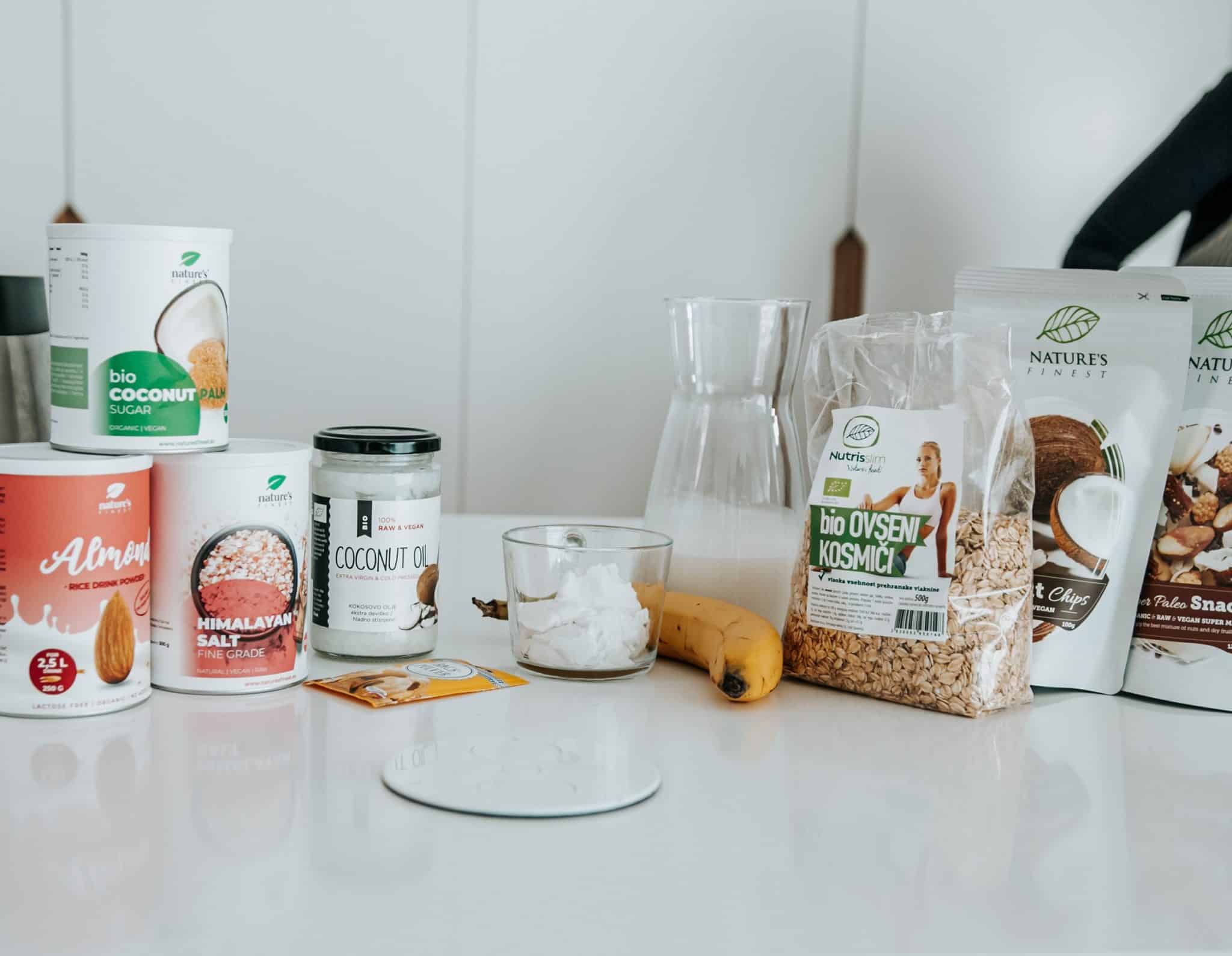1. Mix the dry ingredients together – oat flakes, baking powder, cinnamon, ground coconut chips and Himalayan salt. Add the wet ingredients – milk, agave syrup, mashed banana, a teaspoon of coconut oil, vanilla extract and coconut cream. Mix everything well to get a smooth lump-free mixture.