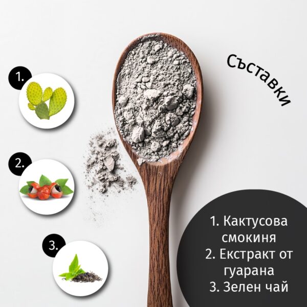 Формула с пет действия с бодлива круша, екстракт от гуарана, екстракт от зелен чай, люспи от живовляк и инулин.