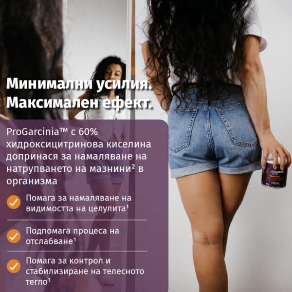 С мощен екстракт от ProGarcinia™ с 60 % хидроксицинтерична киселина (HCA) тази революционна формула против целулит помага за намаляване на натрупването на мазнини. ²