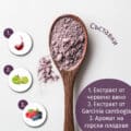 Екстрактът от червено вино, съдържащ 30% полифеноли, помага за намаляване на видимостта на целулита и за контрол на телесното тегло. 1