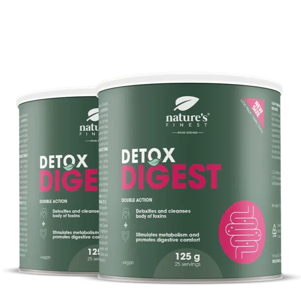 Detox Digest подкрепя детоксикацията на тялото с артишок и подкрепя здравето на черния дроб и детоксикацията на тялото с бодил. Хлорелата е ефективна комбинация за детоксикация на тялото: помага да се премахват тежките метали от тялото и оказва благоприятен ефект върху функцията на жлъчката, черния дроб и бъбреците – органите, които участват в детоксикацията на тялото.