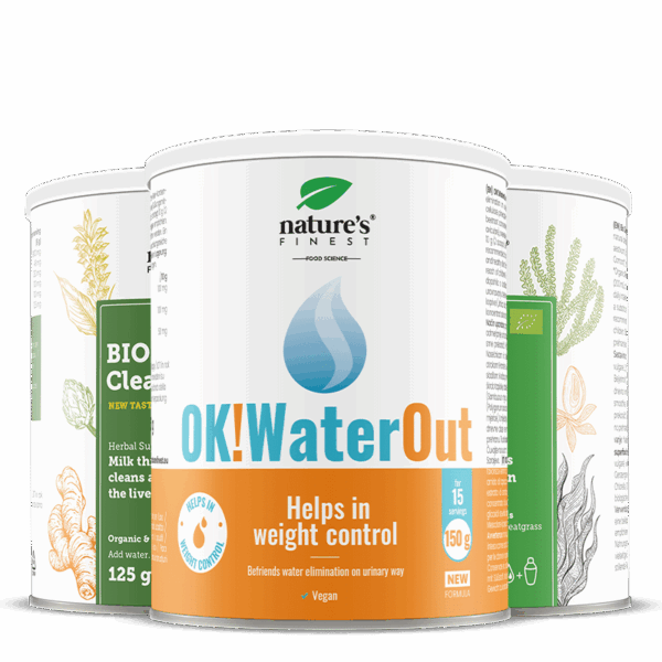 Пакетът комбинира 3 добавки с мощни натурални екстракти, които ви помагат да постигнете жизненост и детоксикация⁶, отслабване⁵ и извеждане на вода през уринарната система⁴.