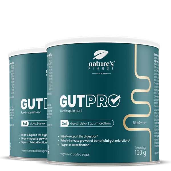 GutPRO е хранителна добавка, която комбинира комплекс от храносмилателни ензими, растителни екстракти и пребиотични влакна в една формула.