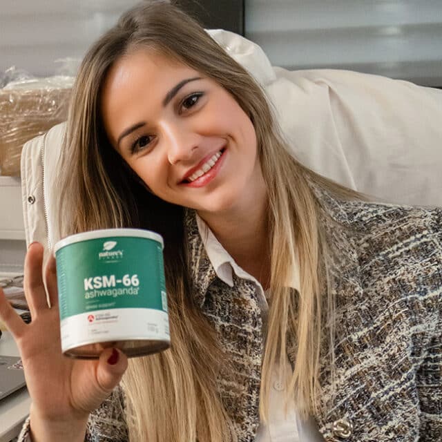 Приемам KSM-66 Ashwagandha® всяка сутрин. Чувствам се по-спокойна през деня и спя по-добре през нощта.