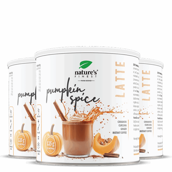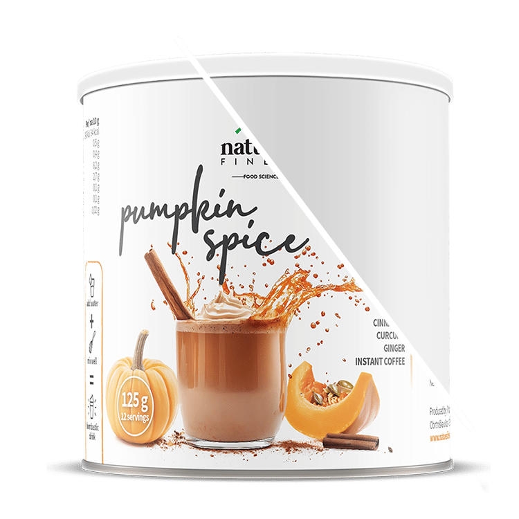 Съставки: оризов напитков прах (ориз, овесени бета-глюкани, слънчогледово олио, сол), прах от агаве, подсладител: еритритол, кокосов напитков прах (кокосов крем, оризов малтодекстрин), аромат на тиква, разтворимо кафе (Coffea arabica L.), аромат на ванилия, канела (Cinnamomum zeylanicum, кора) на прах, джинджифил (Zingiber officinale, корен) на прах, екстракт от куркума (Curcuma longa L., коренище).